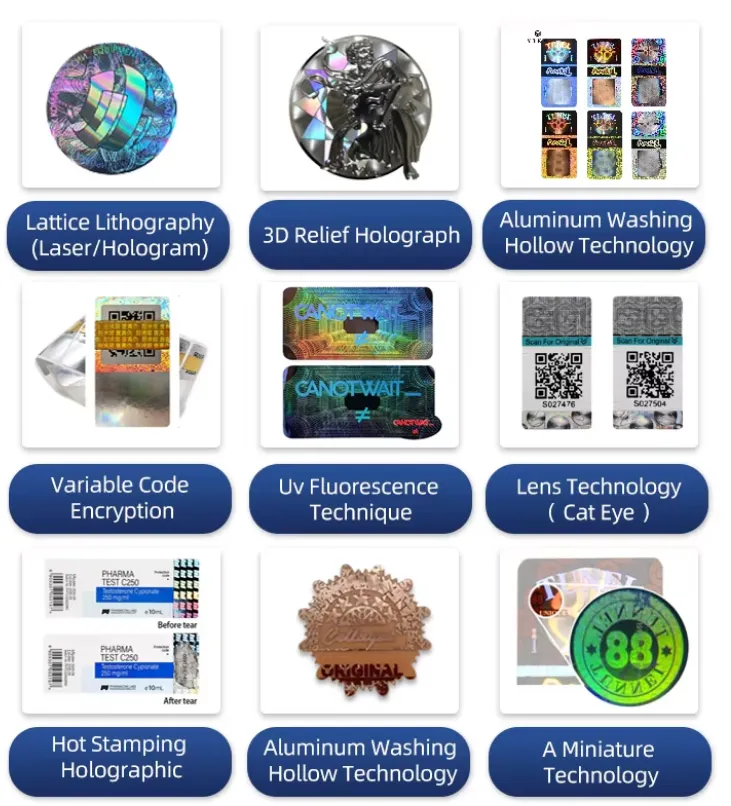 Anti-avfyrningsetiketthar unik tredimensionell bildeffekt och hög säkerhet. Denna typ av klistermärke registrerar specifika bilder eller information i tredimensionell form på ett speciellt medium genom principen om laserstörning, och bildar ett holografiskt mönster som är svårt att kopiera.