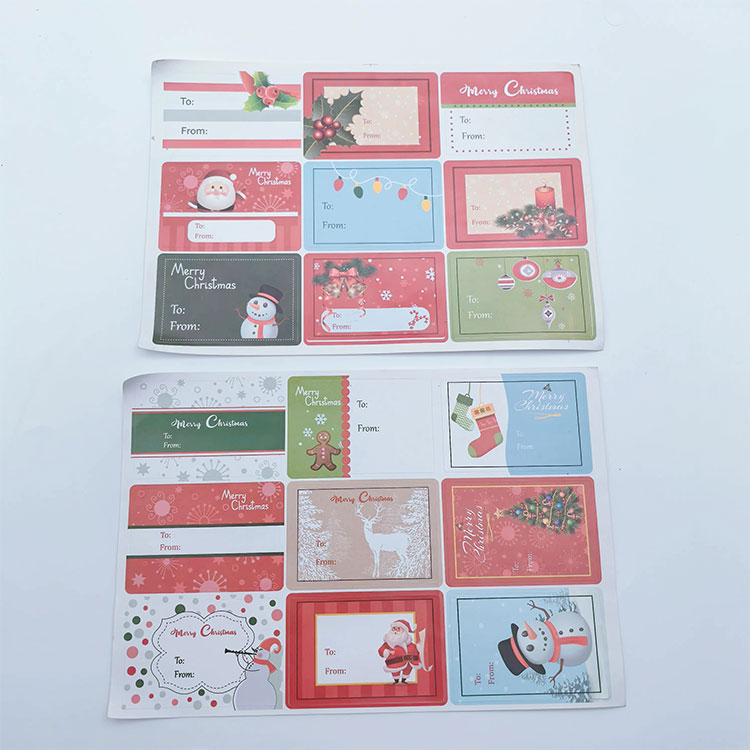 Jul klistermärkeär ett dekorativt klistermärke speciellt designat för att fira jul. Cjul klistermärkenbrukar använda rött, grönt, guld och andra högtidsfärger som huvudfärger, och mönstren inkluderar julgranar, jultomten, renar, snöflingor, presentaskar och andra julrelaterade inslag.Julklistermärkenär gjorda av olika material, inklusive papper, plast eller metall, och är vattentäta och rivsäkra.