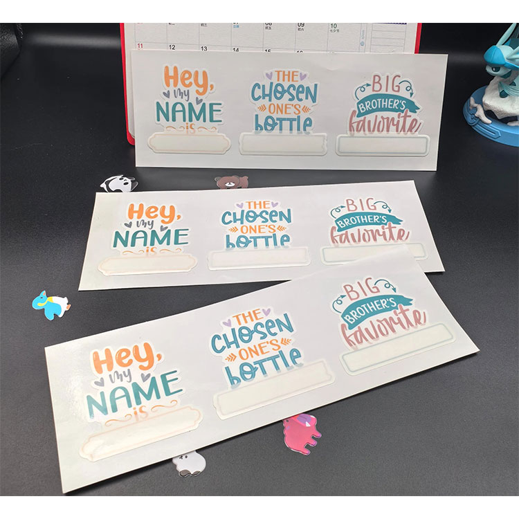 BOPP (biaxiellt orienterad polypropen) klistermärken:Detta material, som vanligtvis används för att göra rullklistermärken, är vattentätt och finns i en mängd olika färger och texturer, såsom klar, vit eller silvermetallic.