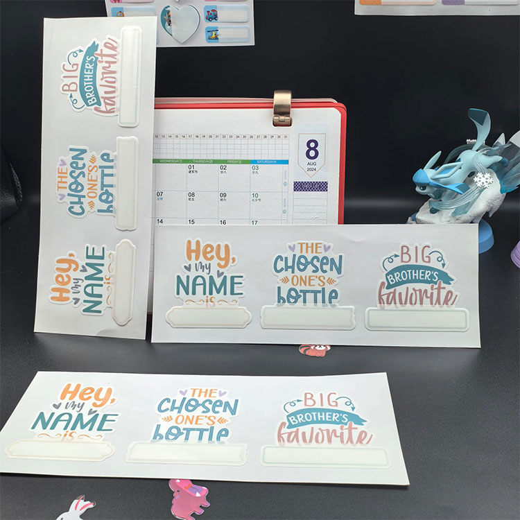 Textur klistermärken:Julklistermärkentillhandahålla speciella bakgrundsfärger eller texturer, vilket ökar designens estetik. Texturerade klistermärken kommer vanligtvis i vita, beige eller vita genomskinliga (Vellum) alternativ.