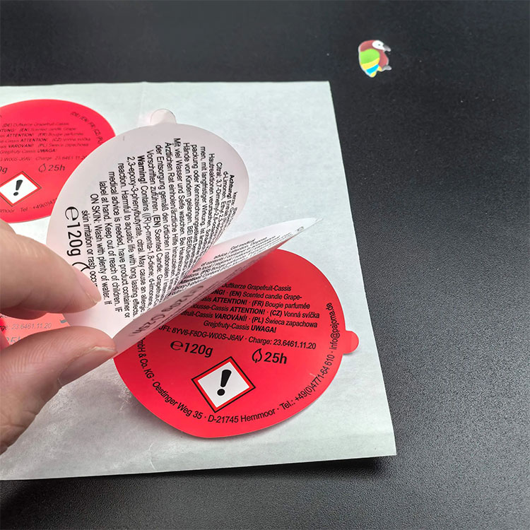 Anpassad storlek och form:Etikettens storlek kan anpassas efter storleken och formen på produktförpackningen, såsom rund, fyrkantig, rektangulär, specialformad, etc., för att säkerställa en perfekt passform för olika behållare.