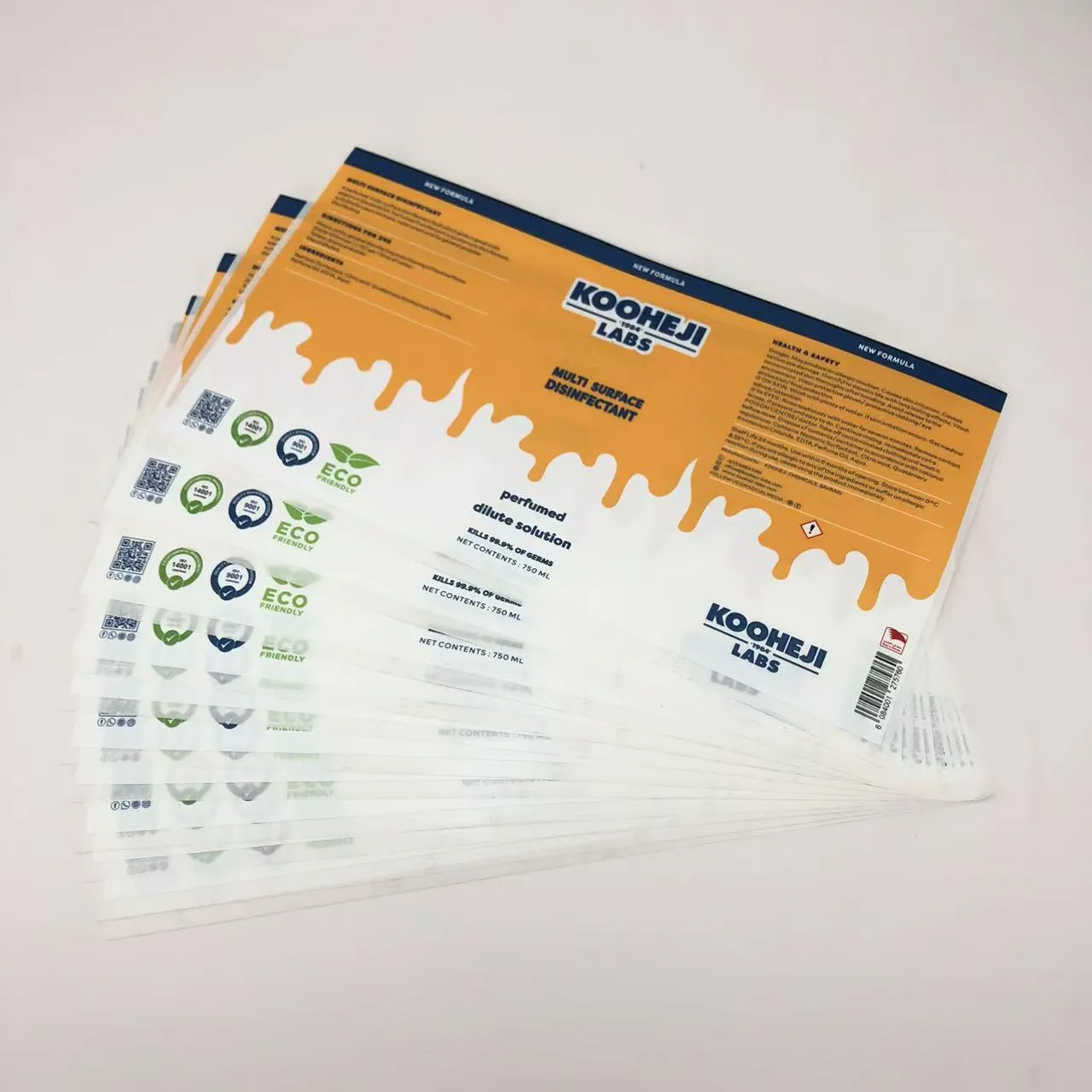 JOJO Pack är en framstående tillverkare av förpackningsetiketter i Kina, med fokus på produktion av desinfektionsmedel för förpackningsetiketter. Vi har rikligt med 3D glänsande desinfektionsmedelsetiketter i lager och tillhandahåller gratisprover som kunderna kan testa. Vårt omfattande produktsortiment inkluderar flerskiktsetiketter, viketiketter, vinetiketter, kosmetiska etiketter, medicinska etiketter och barnklistermärken, som betjänar medicinsk, kemisk, livsmedels- och kosmetikindustri. Våra olika etikettklistermärken kommer med attraktiva grossistrabatter samtidigt som de säkerställer tydlig produktinformation. Köp från oss för att förbättra din varumärkesimage och få marknadsfördelar.