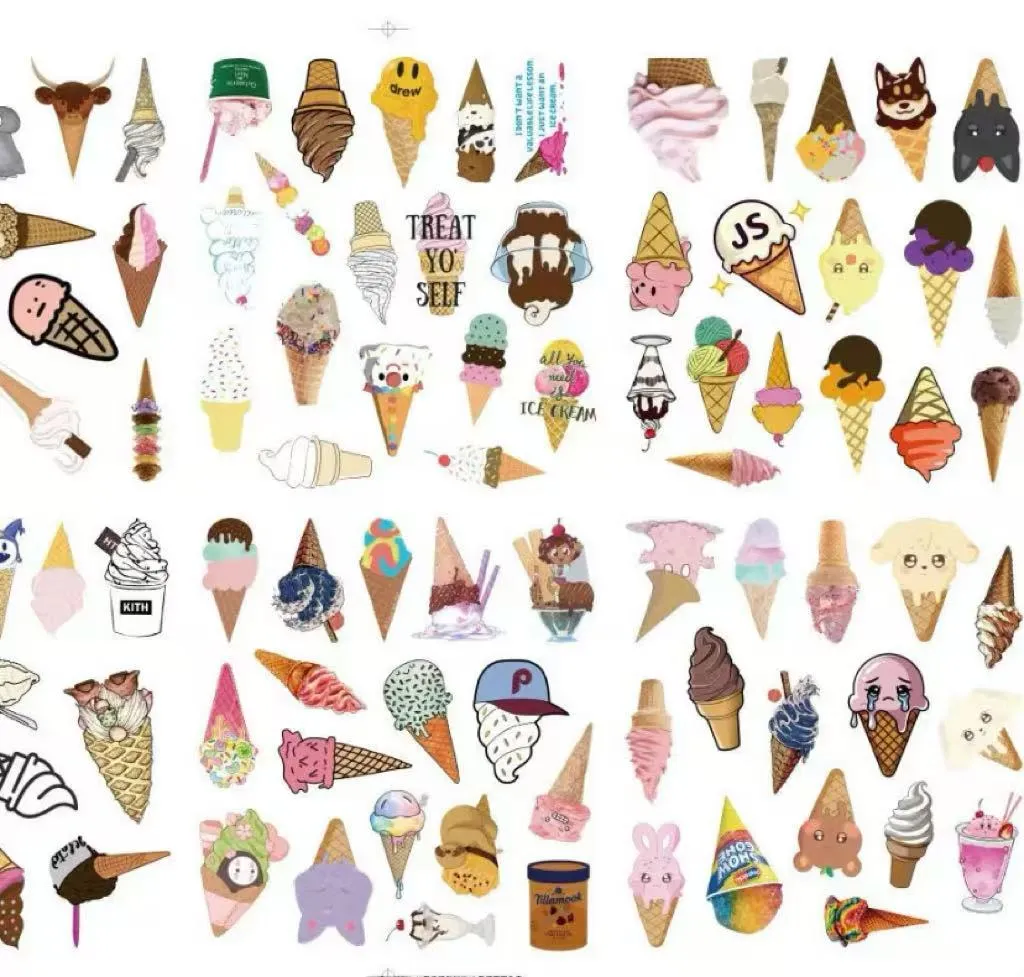 Denna glassklistermärken producerade av Jojo Pack. Den har distinkta glasselement och varje klistermärke verkar utstrålar en cool och söt doft och infuserar omedelbart dina föremål med sommarens vitalitet.