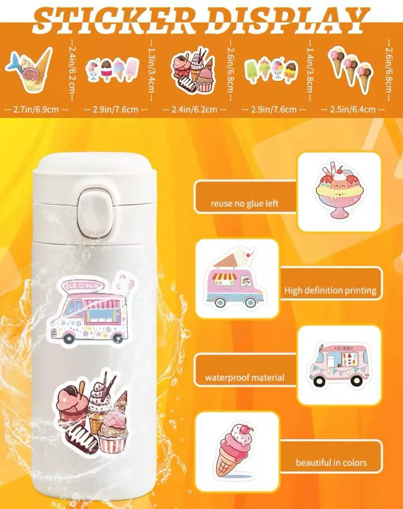 Heminredning:Stick Ice Cream -klistermärken på hemutrymmen som kylskåp, väggar, speglar etc. för att lägga till vitalitet och kul till den levande miljön.
