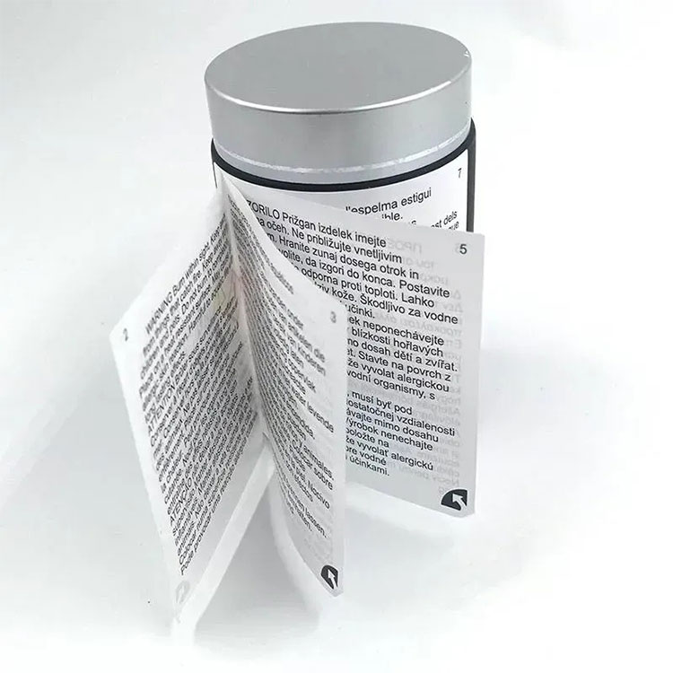 Vikbara etiketter i flera lagerär etiketter med komplex struktur och utsökt design.Vikbara etiketter i flera lagerär gjorda av flera lager av material. Varje lager kan vikas oberoende av varandra. Efter utvikning kan den visa mer information eller bilder, vilket är mycket lämpligt för produkter som kräver att en stor mängd innehåll visas i ett begränsat utrymme, såsom läkemedel, kosmetika eller elektroniska produkter, etc.