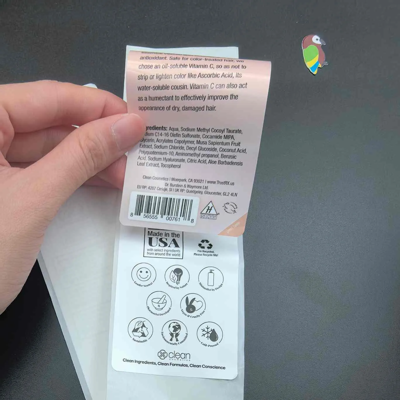 Kosmetika har strikta myndighetskrav för informationsutlämnande, såsom obligatorisk förteckning över ingredienser i enlighet med FDA eller EU:s regelverk. Samtidigt behöver varumärken förmedla varumärkeskoncept och produktförsäljningsargument. MultiLayer för kosmetiska etiketter balanserar perfekt dessa två behov, de följer reglerna genom att bära fullständig information och hjälper varumärken att förbättra produktens konkurrenskraft genom organiserad och attraktiv informationspresentation.