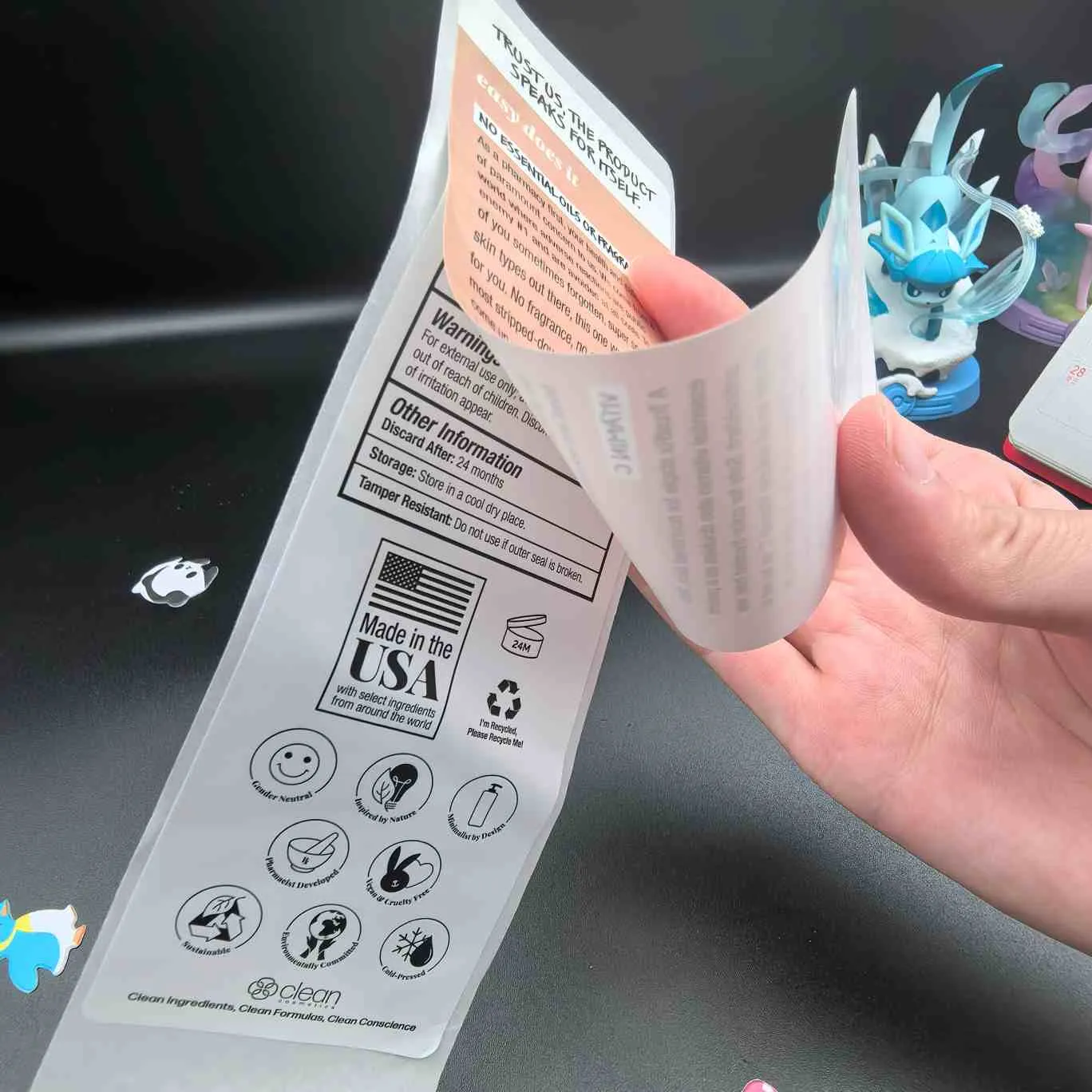 MultiLayer för kosmetiska etiketter, även känd som kosmetiska etiketter med flera lager, hänvisar till en speciell etikettdesign som används ofta inom kosmetikaindustrin. Den består av två eller flera lager av etikettmaterial som är sammanfogade. Till skillnad från traditionella enskiktsetiketter kan användare dra av det övre lagret för att avslöja ytterligare information tryckt på det inre lagret.