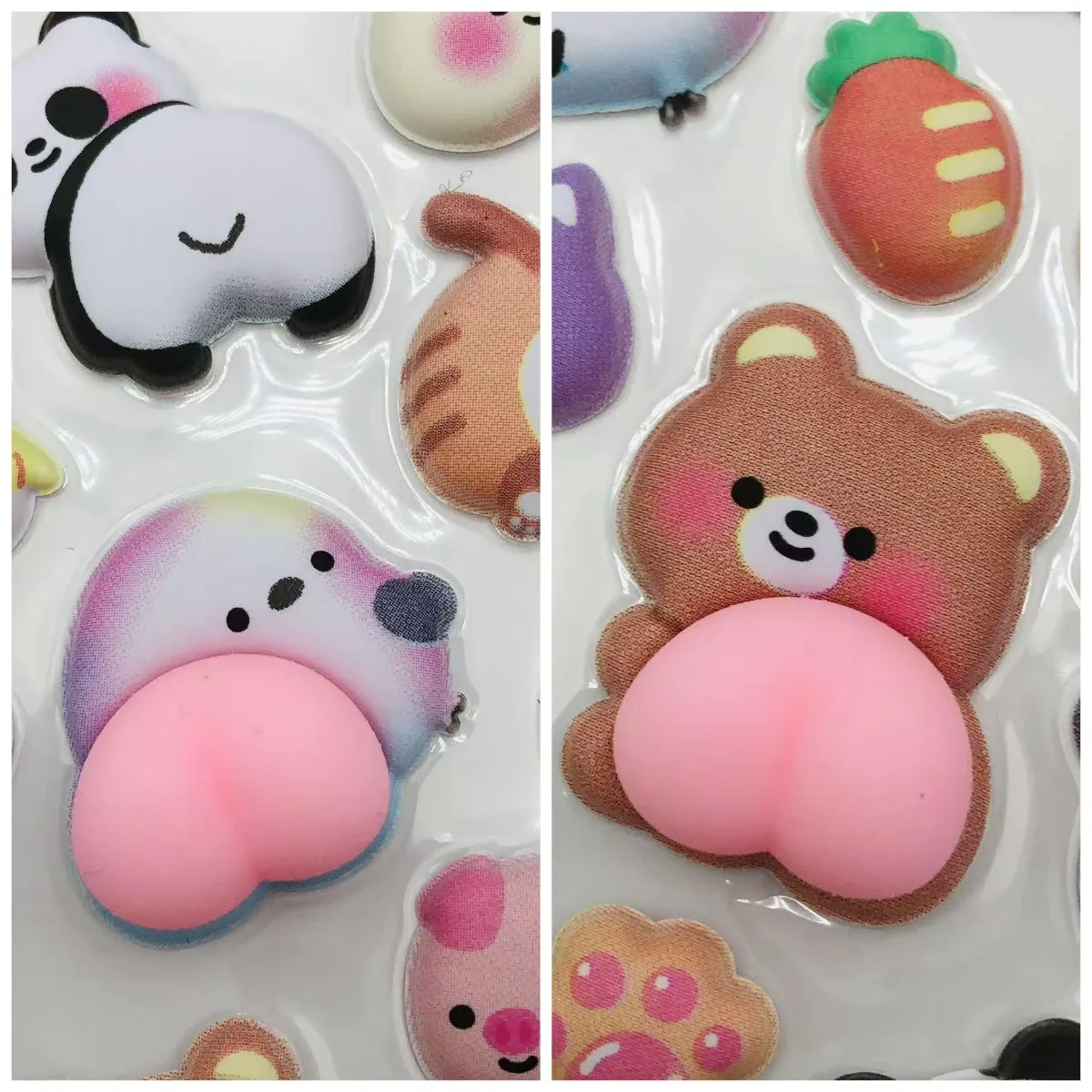 Till skillnad från traditionella stressleksaker kommer dessa rumpformade stressavlastningsdekaler med lim som inte finns kvar på baksidan, vilket gör att de kan klistras och återanvändas som vanliga klistermärken. De kan fästas på telefoner, datorer, bärbara datorer, vattenflaskor, skrivbord eller vilken yta du vill dekorera och fungerar som både en avstressande leksak och ett unikt uttryck för personlighet.