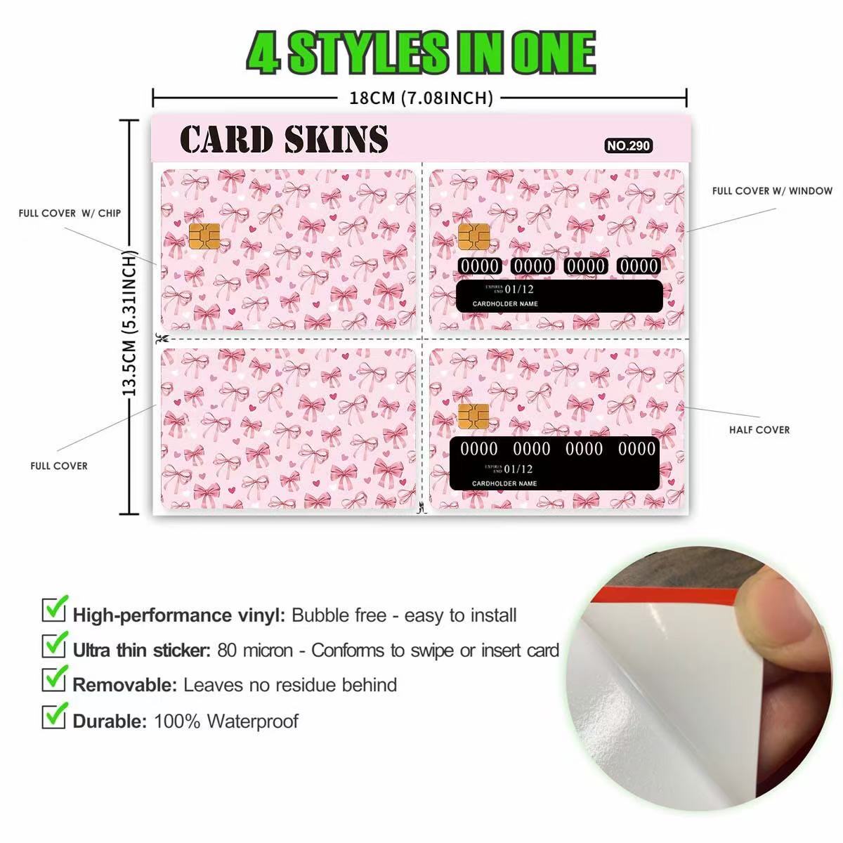 Våra kreditkortsdekaler är designade med ett starkt fokus på anpassning för att möta de olika behoven hos globala kunder. Vi erbjuder fyra stilar för kunder att välja mellan, som täcker ett brett spektrum av estetiska preferenser.