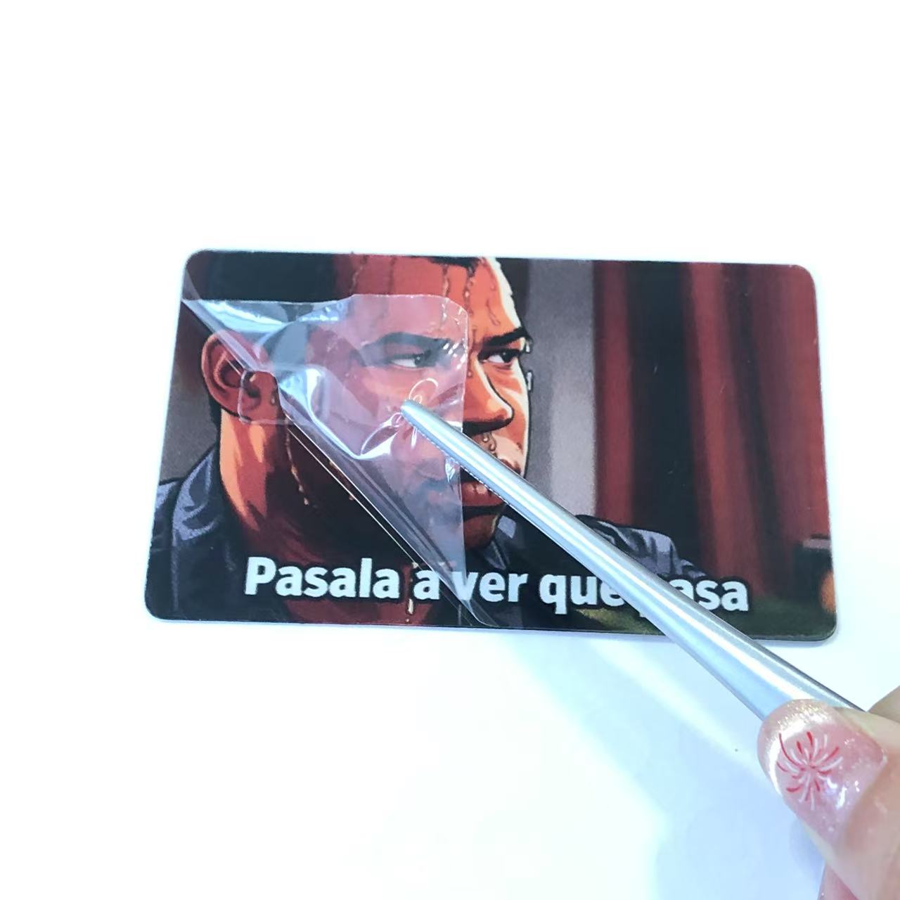 För att säkerställa produktkvaliteten under transporten är varje kreditkortsdekal utrustad med en skyddsfilm på ytan. Detta skyddande lager skyddar effektivt klistermärkena från repor, damm och andra potentiella skador som kan uppstå under transporten. Efter att ha tagit emot varorna behöver kunderna bara dra av skyddsfilmen för att avslöja kreditkortsdekalernas tydliga och livfulla utseende.