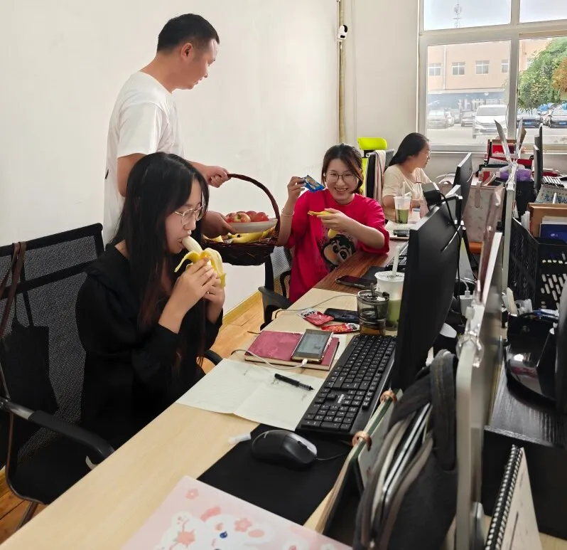 Kombinationen av färska frukter och speciella snacks har blivit en "energipåfyllningsstation" för eftermiddagens kontorstid och lägger till en touch av sötma och vitalitet till den livliga arbetsrytmen. Varje dag klockan 15 fylls eftermiddagsteområdet för varje avdelning med fruktdoft. Administrativ personal bär korgar fulla av förnödenheter och rör sig bland dem och sparkar av en unik eftermiddagste -distributionshändelse. I korgarna staplas röda äpplen upp som små berg, gula bananer är böjda som halvmåner, och ordentligt arrangerade bredvid dem är enskilda paket med nötter, kex och energibar. Dessa färska ingredienser väljs noggrant för att säkerställa en balanserad näring samtidigt som de överväger olika smaker, vilket ger en snabb påfyllning för de utmattade anställda.