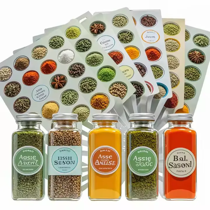 Kryddetiketter är lämpliga för att identifiera råvaror i livsmedelsförädlingsstadiet och kan förbättra hanteringseffektiviteten. Samtidigt är den utformad med högtemperaturbeständiga, vattentäta och oljesäkra material, som uppfyller hållbarhetskraven i olika miljöer. Kryddetiketter kan tydligt indikera information som namnet på kryddan, råvarans ursprung, nettoinnehållet och produktionsdatumet. Vi stöder anpassade mönster, och våra produkter är både praktiska och estetiskt tilltalande. Kontakta oss när som helst.