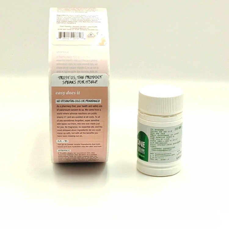 Vitaminetiketten i Jojo Pack kan anpassas i olika material och former. Jojo Pack tillhandahåller olika former av etiketter för dig att välja mellan, till exempel: enskiktsetikett, flerskikts tryckt, broschyretiketter. Du kan välja material och typ av vitaminetikett själv, eller låt oss tillhandahålla personlig design åt dig.